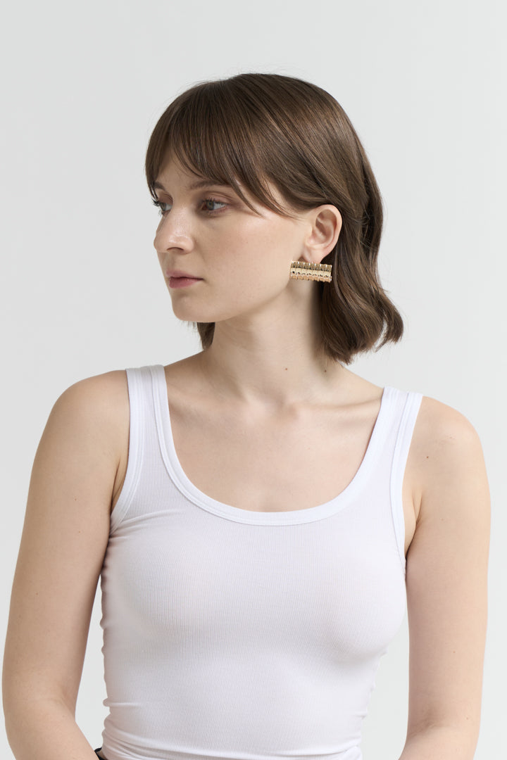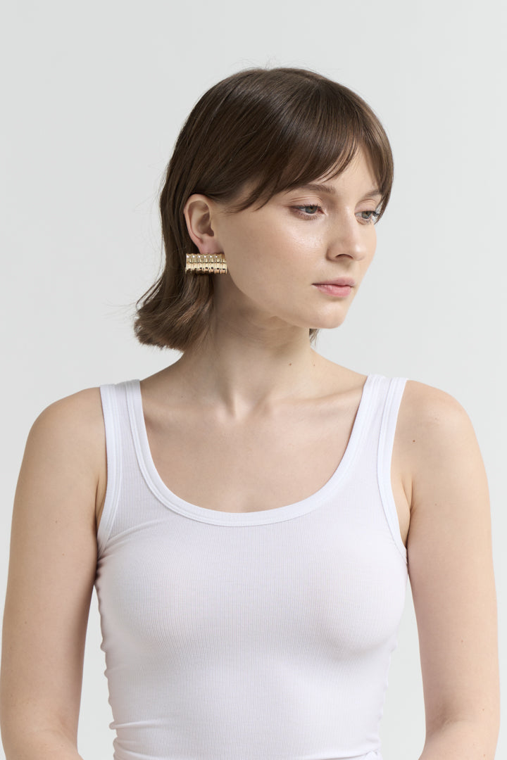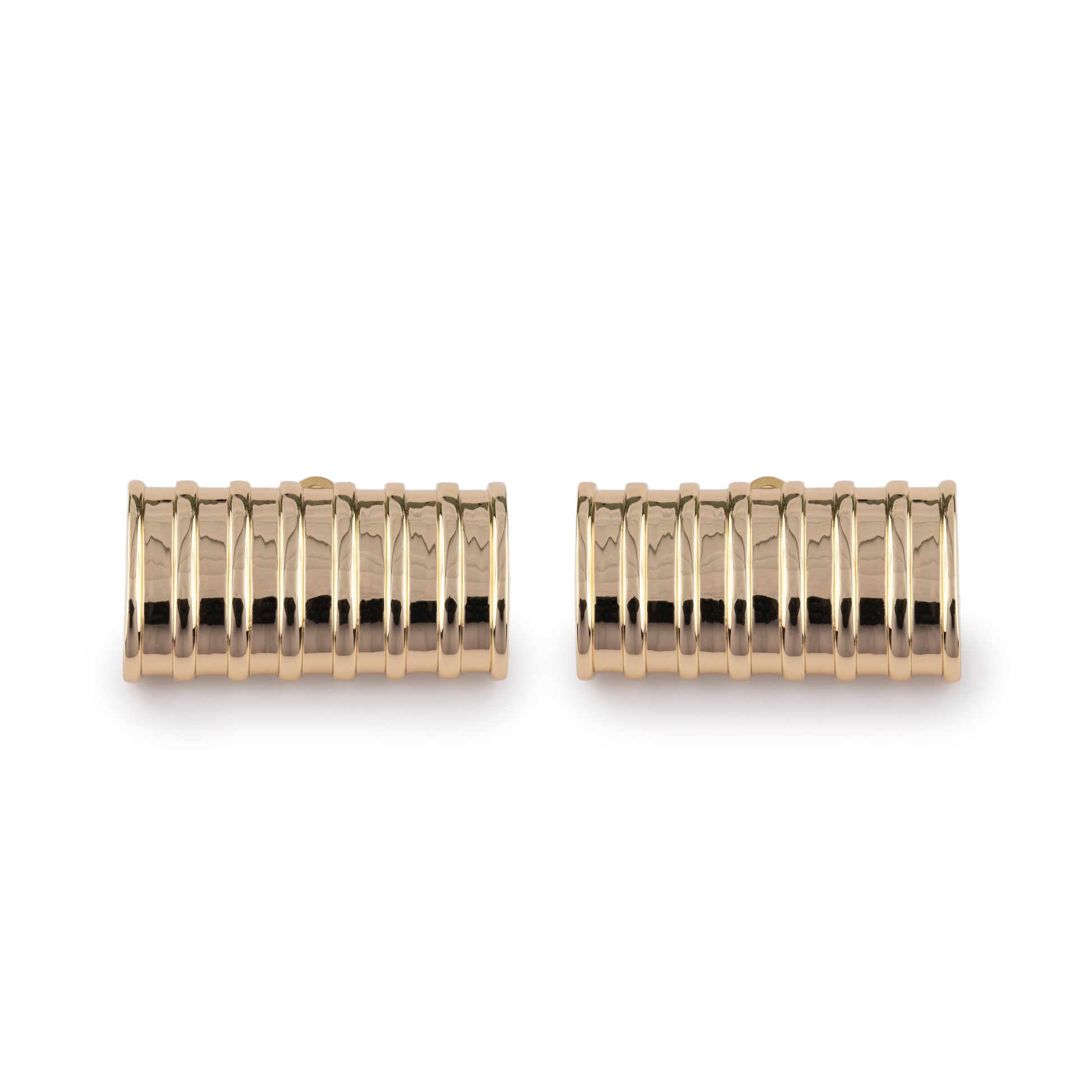 Structured. Sleek. Unapologetically modern. With its ridged form and golden gleam, the Barrel is a study in quiet confidence—a piece that speaks volumes without saying a word.